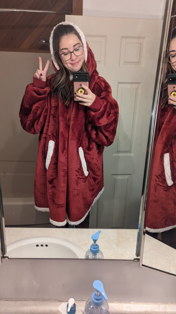 My beloved blanket hoodie that I got as a Christmas Present this year